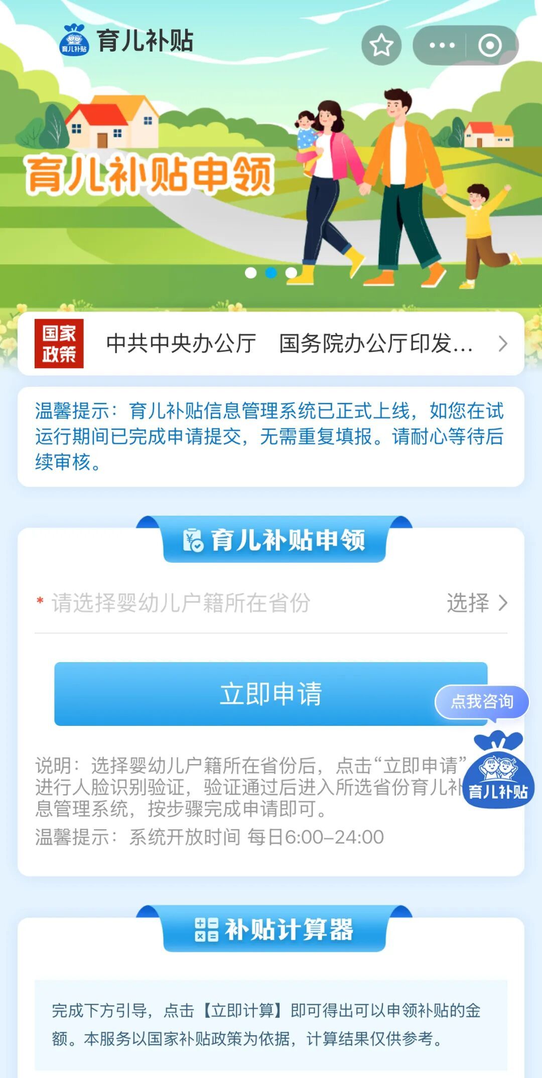 育儿补贴信息管理系统上线后全年开放,申领人可在规定的申领年度内任意时间提交申请。